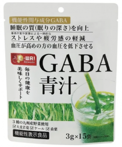 「E-WA!」商品で初めて機能性表示食品として販売する商品。睡眠の質(眠りの深さ)の向上、事務作業・家事による一時的なストレスや疲労感の軽減、血圧が高めの人の血圧を低下させる効果があるGABAを配合した。これまでの九州産の大麦若葉にケール・桑の葉を加え、誰でも飲みやすく続けやすい味に仕上げた。価格は592円。平和堂・エールの全168店で販売している。