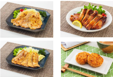 発売商品は「豚ロースのこうじ味噌仕立て」(498円税抜以下同)、「豚バラのこうじ味噌仕立て」(498円)、「だし醤油だれの鶏もも焼き」(358円)、「醤油だれ焼おにぎり」(168円)の4品目。