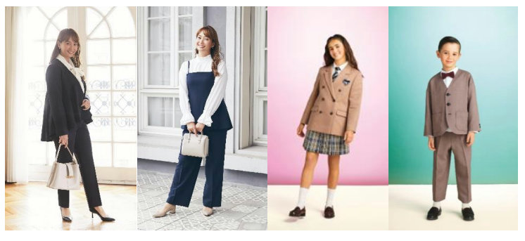 キッズでは、ロングパンツスーツとジャケットワンピースの商品数を昨年より約1.8倍増加し、カジュアルなデザインから、セレモニー向けの上品で華やかなデザインまで幅広く展開する。価格帯はセットで12800円から17800円。