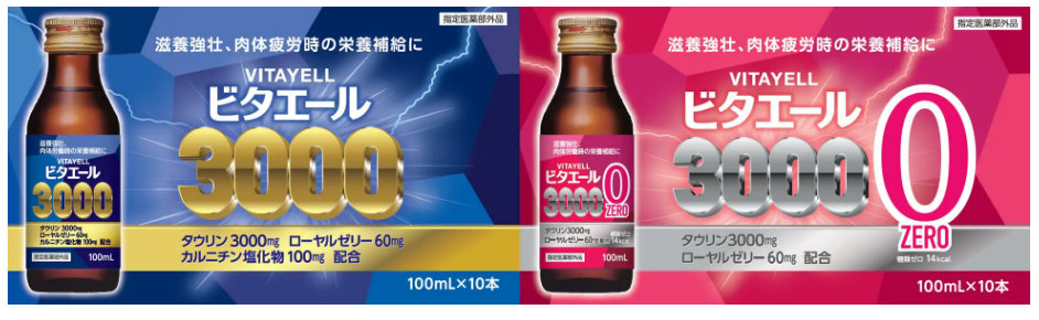 ビタエール3000」「ビタエール3000ゼロ」は、どちらも疲労回復に効果的なタウリンが3000mg、アミノ酸やビタミン、たんぱく質などを豊富に含んだローヤルゼリーが60mg配合されている栄養ドリンク。糖質が気になる人は糖質ゼロタイプの「ビタエール3000ゼロ」がおすすめ。10本入で税込価格548円。