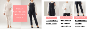 また、今年は新たにペプラムジレ(袖のない羽織物)。ベストやAラインジャケットなど、1着でイマドキセレモニースタイルが完成するセットスーツに加え、毎年人気のカラーレスジャケットにボトム・ブラウスをセットにしたビジネスからセレモニーまで使える商品などを取り揃える。