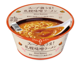 味噌、豚骨、ラード、香味調味料を合わせた濃厚な味噌のコクと豚骨や炒め野菜の旨味を楽しめるスープが特長。中太でもっちりとした食感のノンフライ麺を合わせている。