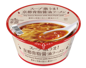 ポークとチキンをベースにし、鶏や背脂の旨味と醤油のコクが楽しめるスープが特長。喉ごしの良い中細のノンフライ麺を合わせている。