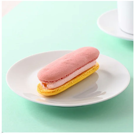 「マカロン サンド(イチゴ&パッションフルーツ)」は、イチゴとパッションフルーツの甘酸っぱい味わいが楽しめるマカロンサンド。代表的なフランス菓子であるマカロンを、「ファミマルSweets」として表現した。本体価格は249円(以下同)。
