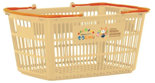 そうにゃんマイバスケット第2弾は、やさしいクリーム色を基調とし、持ち手はそうてつローゼンをイメージした明るいオレンジ色で、側面にはそうてつローゼンのエプロンを身にまとったそうにゃんが店員として働く姿が描いてある。本体と持ち手部分はSIAA(抗菌製品技術協議会)認証の抗菌剤を使用。税別900円。