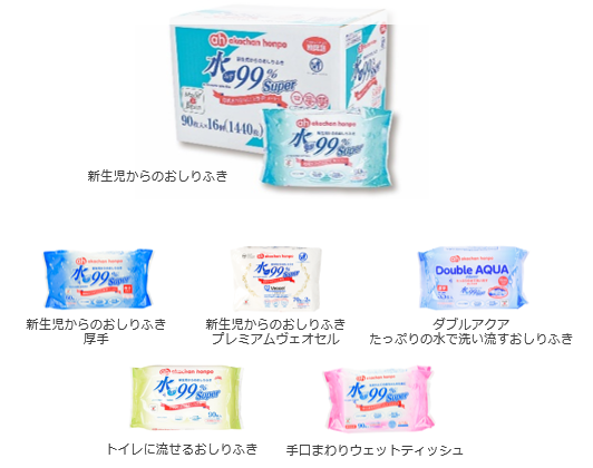 「水99%Superシリーズ」が 12年連続で第1位。枚数が多めでコスパが高く、水分たっぷりでふきやすいという、価格以上の品質の高さで高評価を獲得した。多くのリピーターから支持されている。