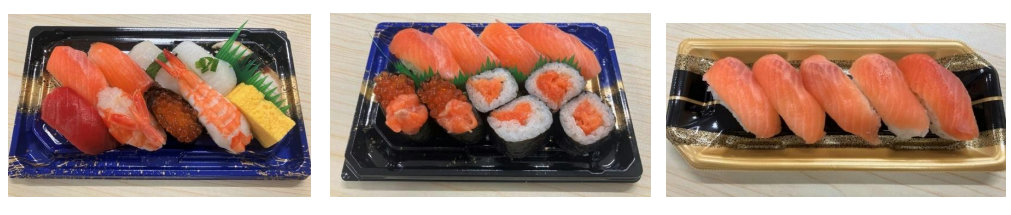 「桃太郎サーモン」を使用した販売商品の一例。