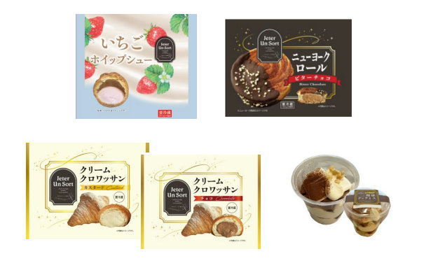 新商品は、シュー生地に春を感じるいちごフレーバーのホイップを合わせた季節限定商品「いちごホイップシュー」本体価格149円(以下同)、クロワッサン生地を渦巻き状に焼き上げ、中にチョコクリームが入ったニューヨーク発祥の進化系スイーツ「ニューヨークロールビターチョコ」219円、クロワッサンの生地にカスタードクリームや濃厚チョコクリームを合わせ、冷やして食べる「クリームクロワッサンカスタード」と「クリームクロワッサンチョコ」199円、珈琲風味のスポンジとティラミスクリーム、砕いたアーモンドが層になったカップスイーツ「珈琲ティラミス」199円の全5種類。「ジュテ・アン・ソール」シリーズとして展開する。