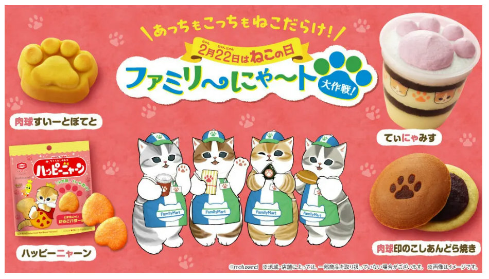 (株)ファミリーマート(東京都港区、細見研介社長)は2月18日(火)から、毎年恒例となっている2月22日の“ねこの日”に合わせて、ねこモチーフのオリジナル商品を発売する「ファミリ~にゃ~ト大作戦!」を全国のファミリーマート約1万6200店で開催する。