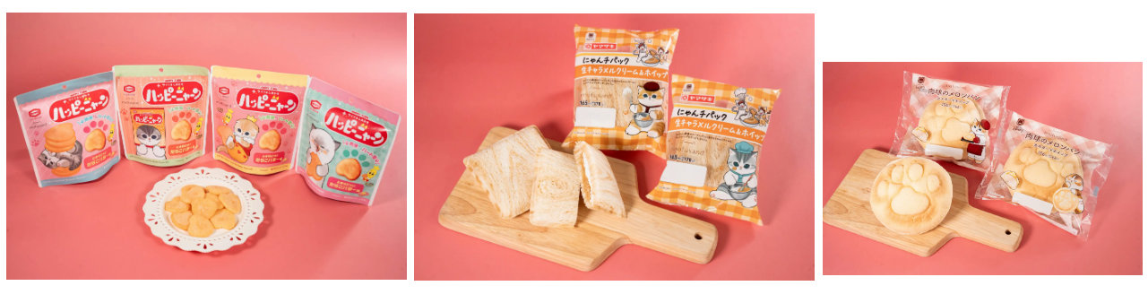 毎年大変好評なイラストレーター「ぢゅの」さんが描く「mofusand」とのコラボ商品として、「ハッピーターン」が「ハッピーニャーン」本体価格173円(以下同)に、「ランチパック」が「にゃんチパック」165円となって登場する。そのほか、肉球をかたどった「肉球のメロンパン(カスタードホイップ)」156円、「バナナにゃて」230円、「午後の紅茶 おいしい無糖」158円、「mofusandチャーム付きミニポーチ」1600円なども展開する。