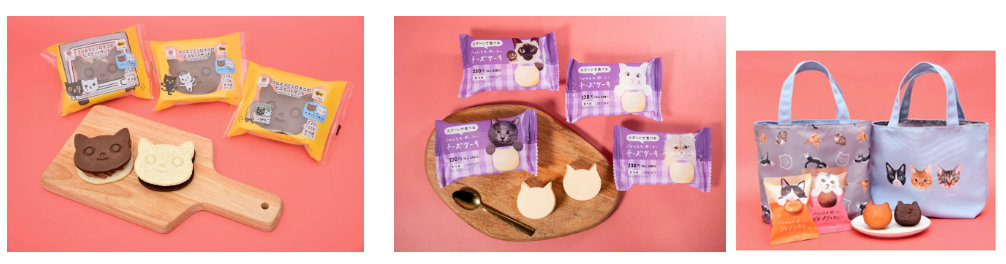 また、昨年に引き続きヤマト運輸とのコラボレーション商品として、ヤマトグループ公式キャラクター「クロネコ」と「シロネコ」でチョコクリームを挟んだビスケットサンド239円を発売する。さらに、ねこ専門イラストレーター「Coony(クーニー)」さんによるねこ愛あふれる「もふもふ」なオリジナル商品パッケージを今年も発売する。「にゃんともおいしいチーズケーキ」230円や「Coonyねこねこトートバッグ&菓子セット」1619円などが数量限定で登場する。