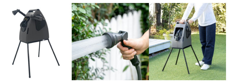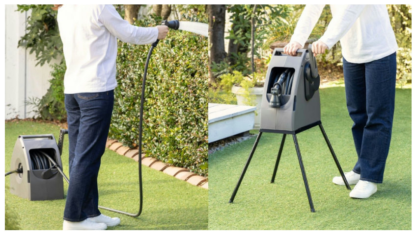 「Breezy Green ホースリール ギアスピードギガ 20m スタンドセット」は、脚付きのため、立ったまま楽にホースを巻きとることが可能だ。サイズは約幅50cm×奥行56cm×高さ83.5cm、単品重量は約6kg、ホースの長さは20m、ホース内径は12mm。価格は7980円。