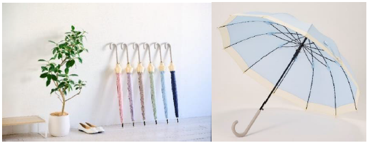 雨傘は梅雨に備えて、耐風骨仕様と丈夫な12本骨仕様の2タイプを展開する。強風でひっくり返っても閉じると元に戻り折れにくい耐風骨仕様だ。12本骨仕様は骨数がより多いため、美しいシルエットを保てる。