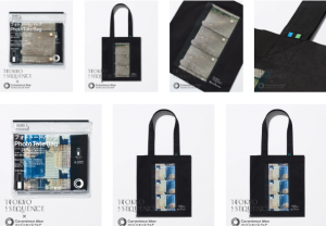 「TOKYO SEQUENCE」の作品をデザインしたトートバッグ。サイズは、本体が幅370×高さ405mm、持ち手が幅40×長さ700mmで、1290円。