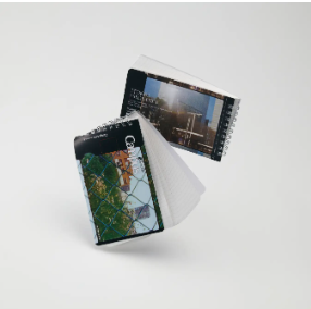 パソコン前でのメモに適したサイズのノート。「TOKYO SEQUENCE」の作品をデザインした。380円。