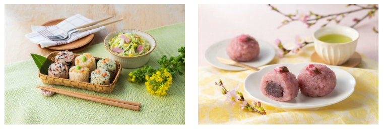 花見などで外出が増えるシーズンに向けて、春らしい食材を使用した彩り豊かなおにぎりのセットや温めいらずで外出先でも楽しめる弁当、そのほか惣菜やスイーツなど全20種を発売する。