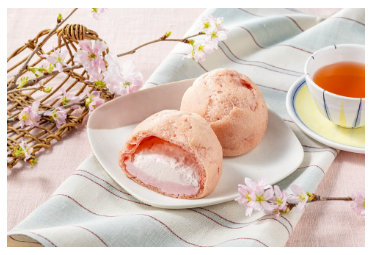 「さくらもこ」は、白あんを混ぜ込んださくらクリームとホイップの2つの食感が楽しめるもっちり食感のシュー。200円。