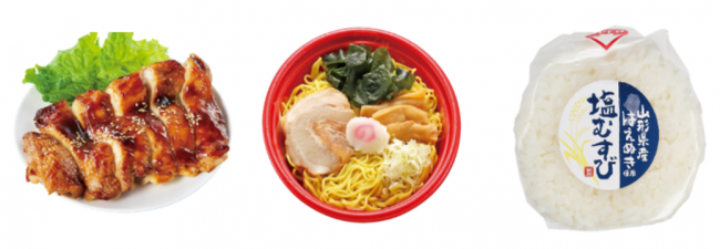 また、「ひまわり風醤油ラーメン」は、一部店舗の軽食コーナーで提供している「ひまわりラーメン」を商品化。「おうちでもひまわりラーメンを食べたい」という顧客の声から生まれた商品。そのほか、塩むすび(山形県産はえぬき使用)など地元産食材を使ったラインアップとなっている。