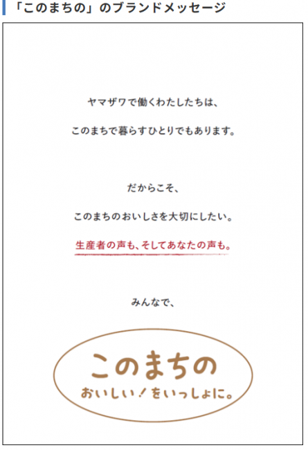 「このまちに住むわたしたちだからこそ、このまちに住む人たちにできること」というブランドコンセプトで地元惣菜ブランド「このまちの」の名称となった。