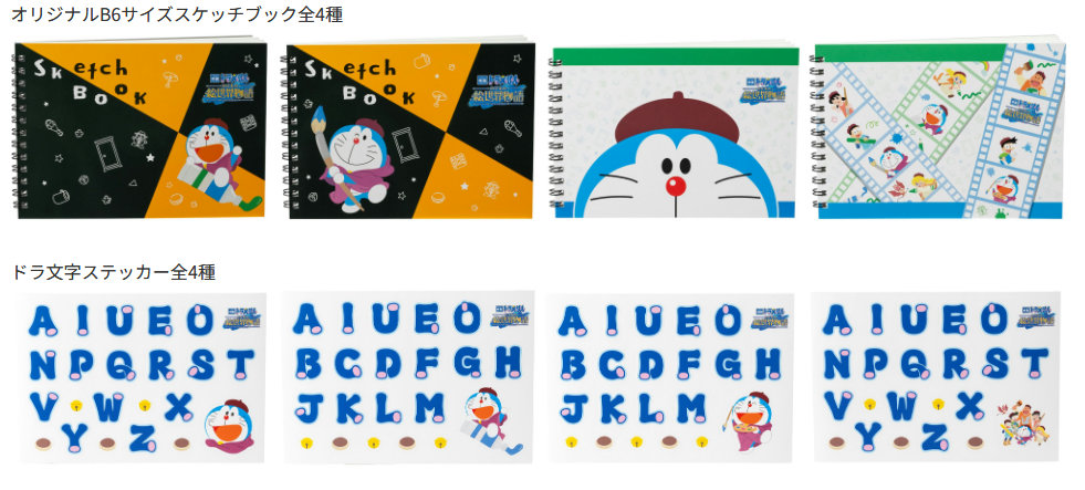 期間中、対象商品を2個購入ごとに、ここだけのドラえもんオリジナルグッズ「オリジナルB6サイズスケッチブック全4種」か「ドラ文字ステッカー全4種」のいずれか1個をプレゼント。