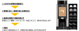 「セブンカフェ ティー」は、「セブンカフェ」と同様、レジで専用カップを購入し、専用マシンで淹れる。こだわりの茶葉に、熱湯に近い温度のお湯を注ぎ、最適な時間で蒸らすことによって、茶葉本来の香りが華やかに香り、淹れたての味わいを引き出す。