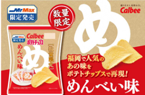 (株)ミスターマックス・ホールディングスグループの(株)ミスターマックス(福岡県福岡市、平野能章社長:以下MrMax)は、カルビー(株)(東京都千代田区、江原信社長)、(株)山口油屋福太郎(福岡市南区、田中洋之社長)の3社で共同開発したMrMax限定発売商品「厚切りポテトチップスめんべい味」を3月25日(火)から、MrMax全57店舗とオンラインストアで販売開始した。