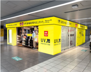 (株)ユニクロ(山口県山口市、塚越大介社長兼COO)は、JR池袋駅中央1改札内店やJR新大阪店など、国内外の多くの人が集まる駅構内の8店舗に太陽の日差しをイメージした外装の「黄色いユニクロ」を展開する。