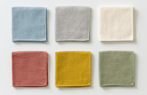 愛媛県今治市の地域産業との取り組み第1弾は、2022年4月から発売している「今治産タオル」。第2弾となる「今治製 紋織ハンカチ」は、肌あたりがよい紋織を施したハンカチで、新橋(しんばし)、薄墨(うすずみ)、灰白(かいはく)、臙脂(えんじ)、辛子(からし)、草(くさ)の6色で展開する。
