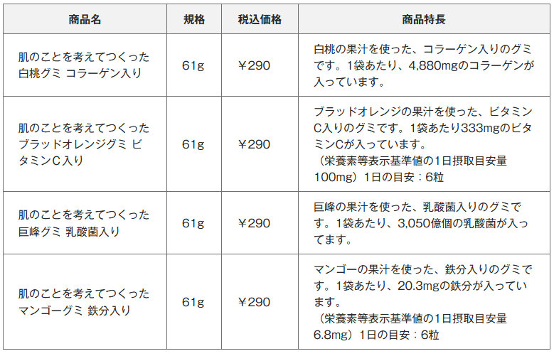 良品計画news|「肌のことを考えてつくったグミ」4種4/9発売