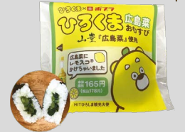 今回、広島の食の魅力を発信する「おいしい! 広島」プロジェクトに賛同し、HIT ひろしま観光大使の「ひろくま」とコラボレーションした商品を 4月15日(火)から発売する。このコラボレーションでは「ひろくま」をイメージした「まんぷく! ひろくま弁当」「ひろくま広島菜おむすび」「しらぬいぱんまん」の 3商品を展開する。