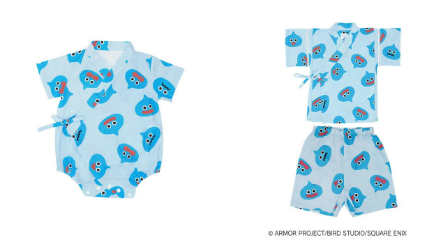 今回販売する新商品には、ベビーウェアの定番ロンパースに新たに2種類が追加される。着るだけでコーデが決まるモンスター柄のサロペット風ロンパースと、前面に大きなスライムがデザインされたインパクト抜群のロンパースだ。また、シリーズ初となる甚平が登場。ベビー用のロンパースタイプとキッズ向けの上下が分かれているタイプの2種類を展開する。