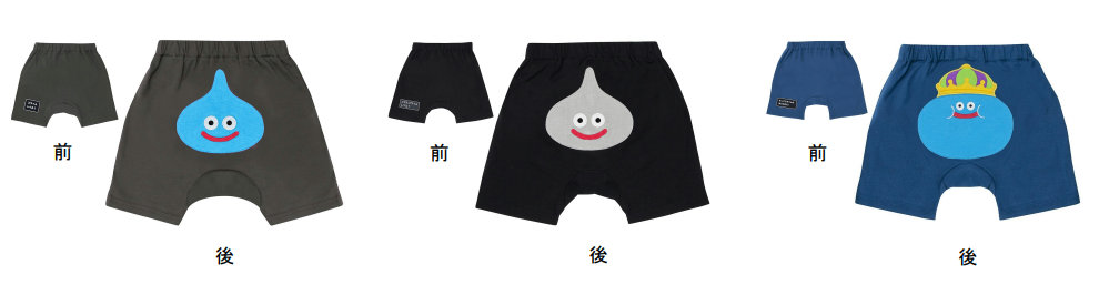 「ハーフ丈モンキーパンツ スライム・メタルスライム・ キングスライム」サイズは80cm/90cm。価格は2499円。