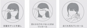 一般的なヘアアイロンに比べてコンパクトなので扱いやすく、前髪や後れ毛をサッとセットすることができ、毛先を小さく巻くのにも適している。