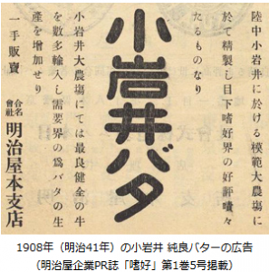 日本のバターのさきがけとして1902年(明治35年)に誕生した「小岩井 純良バター」。乳酸菌で発酵させるヨーロッパの伝統的な製法を取り入れ、多くの手間と時間をかけて丁寧につくられた芳醇な香りは、当時の人々を大いに驚かせ、虜にした。