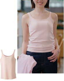 夏に向けて、今の時期からも着られる「Silky FACT COTTON」に、今年はカジュアルに着られるリブ編みデザインが新たに加わる。オーガニックコットンを使用し、カップ部分を一体型カップにリニューアルした。1枚でも、カーディガンなど羽織りものの中に着るインナーとしても使える。今年からよりカジュアルに着られるアメリカンスリーブのタンクトップを展開する。