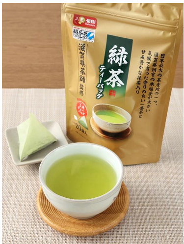 「滋賀県朝宮緑茶ティーバッグ」は、日本五大銘茶である朝宮茶の一番茶葉・抹茶のみを 100%使用した。朝宮茶は、日本最古の茶産地の1つである滋賀県甲賀市で生産され、その歴史は 1200 年以上と言われている。