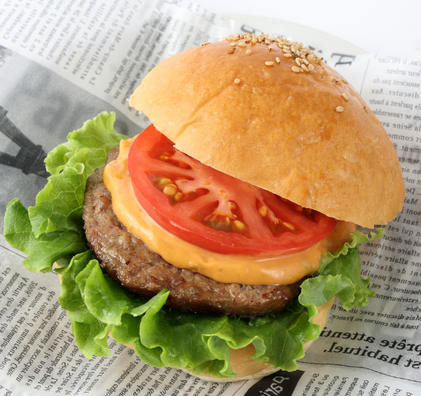 「THE・ビーフバーガー」はバーガーシリーズの人気商品をE-WA!商品とした。滋賀県産小麦100%にこだわった新しいバンズには、製パンに最適なイカリファームのブレンド小麦「近江金色」を使用している。国産小麦特有のもっちり感と米糀配合によるふんわり感を実現した。ビーフパティは豪州産牛肉の粗挽きを使用。店内でジューシーに焼き上げ、隠し味にウスターソースを加えることで肉の旨みを引き立たせている。ビーフとの相性にこだわったトマトの旨みと酸味が際立つオリジナルのオーロラソースで仕上げている。1個本体価格348円。平和堂グループ152店舗で取り扱う。