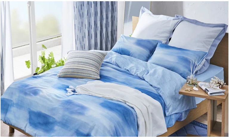 今夏の新作は、海を思わせるブルーにフレッシュなレモンイエローをアクセントに加えたカラーづかいや、触れると冷たさを感じるNクールの寝具カバーやラグなど、デザイン面でも機能面でも涼しくなるアイテムをラインナップする。