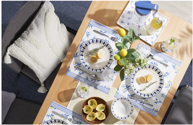 シチリアレモン柄のランチョンマットやトレー、冷水筒も今夏のお奨め商品だ。