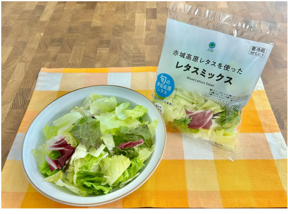 「赤城高原レタスを使ったレタスミックス」は、JA利根沼田管内の赤城高原地域ならでは、冷涼な気候と豊かな自然環境で育まれた旬のレタスを、手軽に食べられるようカットサラダに仕上げた商品。本体価格で156円。