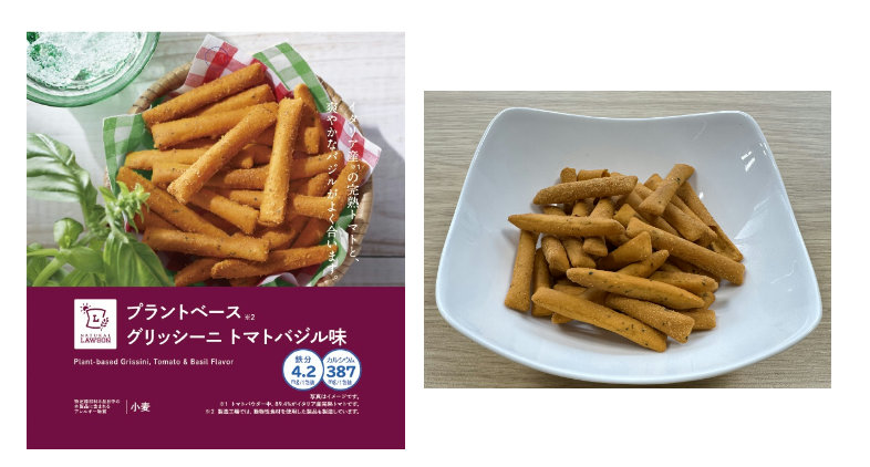 (株)ローソン(東京都品川区、竹増貞信社長)は5月27日(火)から、ナチュラルローソン菓子シリーズとして、植物由来の原材料のみを使用した「NL プラントベース グリッシーニ トマトバジル味」を、全国のローソン店舗1万4026店舗(2025年4月末時点)で発売する。価格は168円(税込み)。
