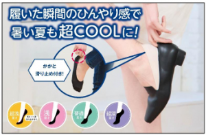 「超COOL」シリーズは、同社基準の2倍をクリアした「接触冷感」に優れた商品。 触れた瞬間のひんやり感が強く、暑い季節を超COOLに過ごせる。中でも「超COOL」インナー、レッグウェアは「接触冷感」に加えて「吸水速乾」機能にも優れ、汗をかいても快適に過ごせる。