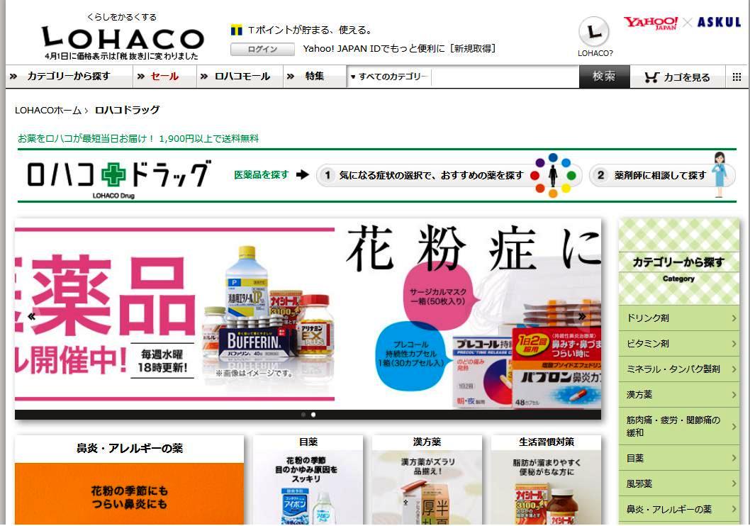 名づけて「LOHACO」だが、その中で医薬品専門店「ロハコドラッグ」をもっている。