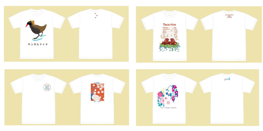 発売するTシャツは、「次世代クリエイター」を目指す学生たちが沖縄の魅力をデザインに込め、一般投票と審査で選ばれたデザインを商品化した。サイズはレディスがS~L、メンズがS~LL。本体価格2780円で、サンエー衣料館各店での発売となる。