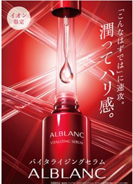 イオンリテール(株)(千葉市美浜区、古澤康之社長)は、花王(株)との共同企画として「潤白美肌」を目指すカウンセリングブランド「ALBLANC(アルブラン)」から美容液「アルブラン バイタライジングセラム」(医薬部外品)を発売する。8月12日(火)から「イオン」「イオンスタイル」全国約260店舗と「イオンスタイルオンライン」で販売する。30mⅼ入りで本体価格9500円。
