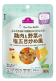 「トップバリュ グリーンアイナチュラル」の「純輝鶏(じゅんきけい)」を原料に使用している。有機栽培の玉ねぎ、さつまいも、にんじんを加えた。目安は離乳後期(歯ぐきでつぶすことができる)/9~11カ月頃から。
