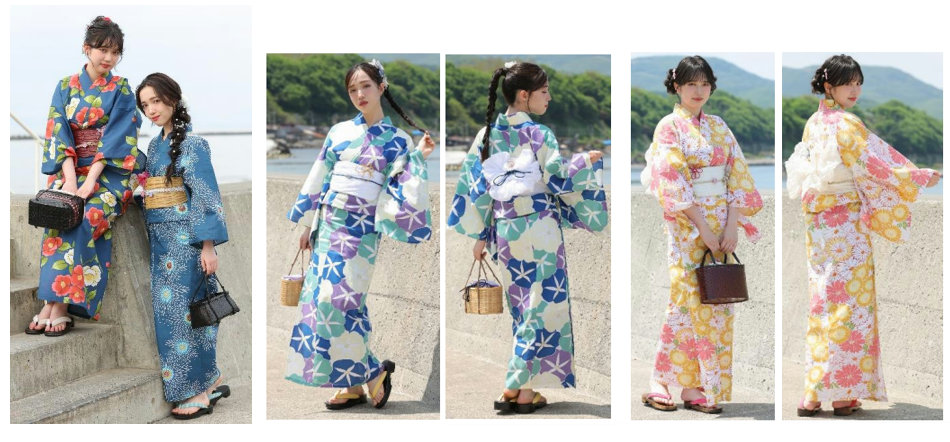 ゆかた、ワンタッチ結び帯の2点セットで、着付けが簡単にできる。サイズはM・Lで、価格は9800円。