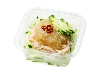 「ねぎ塩ジュレで食べる!滋賀県産きゅうりと蒸し鶏のサラダ」は、滋賀県産のきゅうりを使用し、大根や玉ねぎなどとあわせ、ねぎ塩ジュレを混ぜて食べるサラダ。おかずとしてもおつまみとしてもおすすめだ。239円。発売地域は関西地方(滋賀県・京都府・大阪府・兵庫県・奈良県・和歌山県の一部除く)と三重県(一部店舗)。