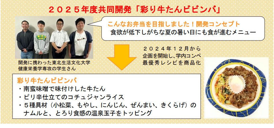 東北生活文化大学と利久は、2022年に産学連携協定を締結。学業の一環として各学生が牛たんメニューレシピを考案している。イオン東北はその趣旨に賛同し、2024年から牛たんメニューレシピの商品化への連携を図り、今回の発売に至った。
