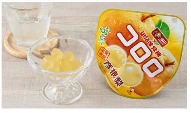 シリーズ4つ目の商品となる「UHA 味覚糖コロロ彦根梨」は、濃厚でありながら後味がすっきりとした爽やかな味わいと、弾力がありジューシーな食感で彦根梨のみずみずしさを実現した商品。40gで本体価格138円。約10万個の限定販売となる。